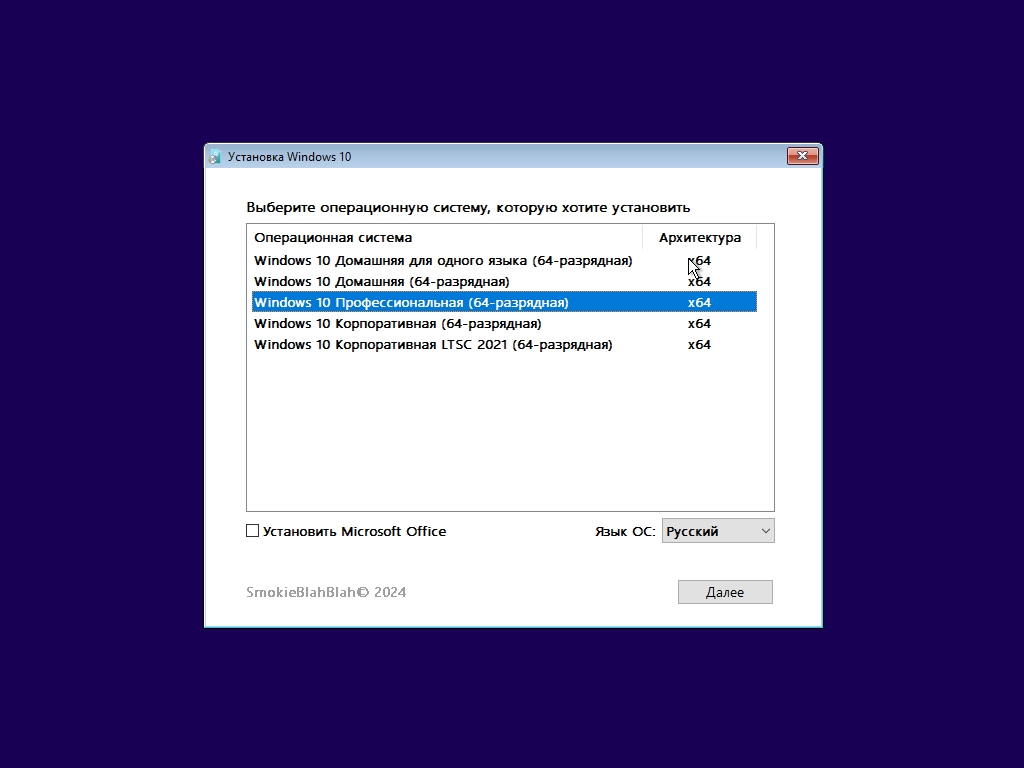 Технические данные Windows 10 x64 24in1 (вкл. LTSC) +/- Office 2024 by SmokieBlahBlah 2025.12.25 торрент: