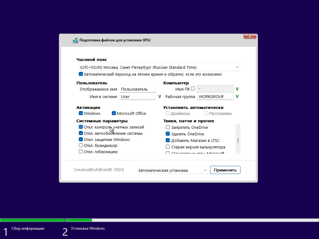 +6 таких же редакций со встроенным MS Office LTSC 2024 Pro Plus x64 (можно выбрать, ставить ли Office. Галочка перед началом установки.) Язык офиса зависит от выбранного языка ОС.