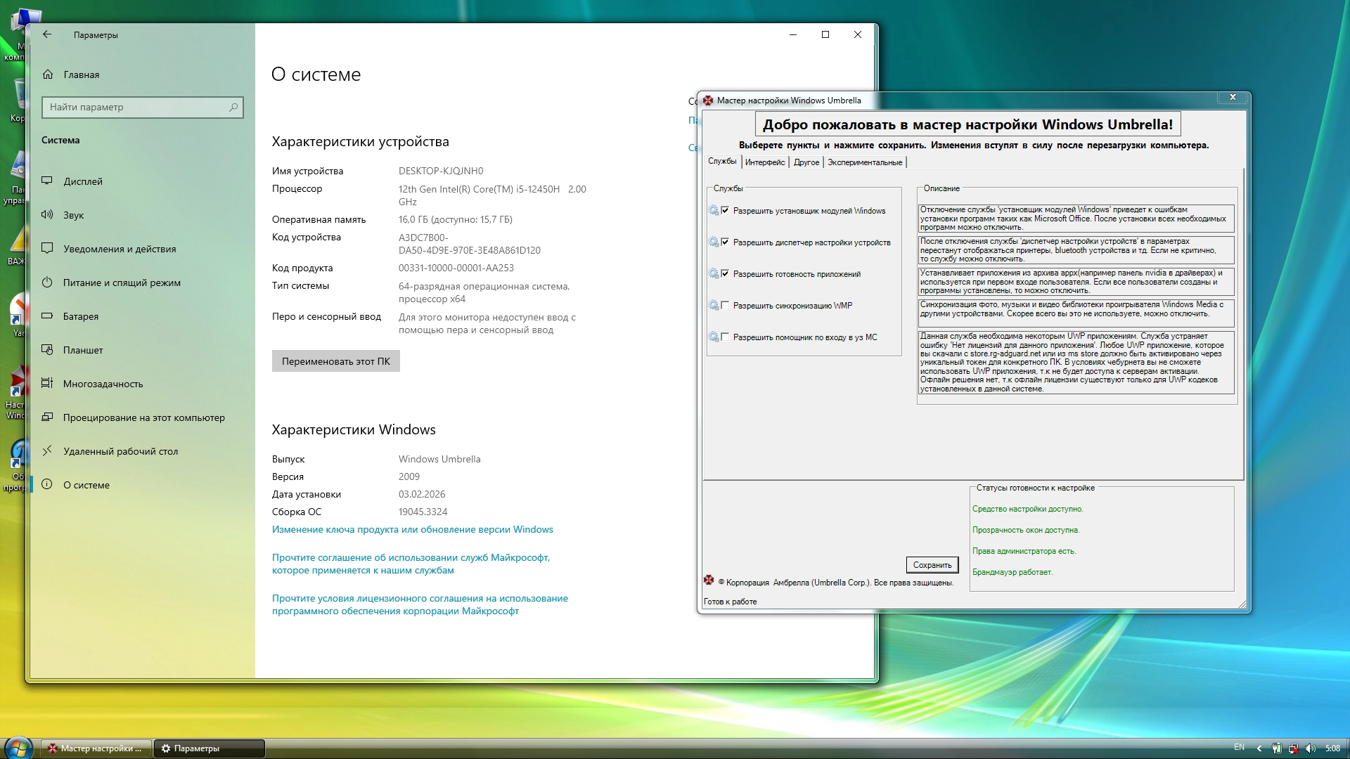 Торрент Windows 10 Pro 22H2 19045.3324 by Umbrella (v9, 02.2026), возможности и способности: