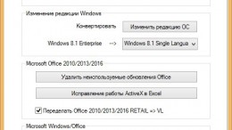 KMSAuto Lite - KMS-активатор для операционных систем Windows VL редакций: Vista, 7, 8, 8.1, 10, Server 2008, 2008 R2, 2012, 2012 R2 а также Office 2010, 2013, 2016. Возможна активация Office 2010 VL на Windows XP. Переключатели открывают доступ к установке GVLK ключей и настройке планировщика задач. Программе НЕ требуются никакие версии .NET Framework