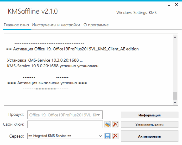 Активация выполняется или от встроенного KMS-Service, или от сервера в сети.