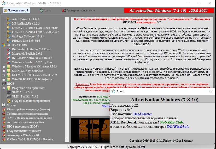 Активаторы все / All activation Windows (7-8-10) v20.0 2021 (2021) PC бесплатно