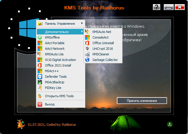 KMS Tools Portable by Ratiborus 01.07.2021 [Multi/Ru] Версия программы: 01.07.2021