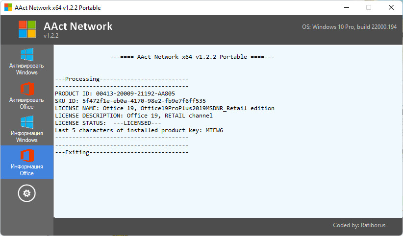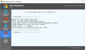 AAct - KMS-активатор для операционных систем Windows VL редакций: Vista, 7, 8, 8.1, 10, 11 Server 2008, 2008 R2, 2012, 2012 R2 а также Office 2010, 2013, 2016. Возможна активация Office 2010 VL на Windows XP. Программа написана с применением оригинальных технологий и реализует другую, отличную от обычной, идеологию конструирования подобных программных средств. Программе НЕ требуются никакие версии .NET Framework, работает на Windows XP - 11.