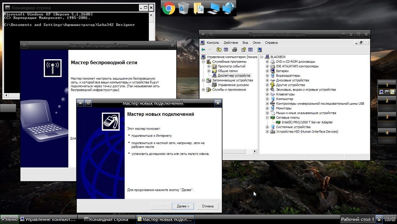 Модифицированная сборка Windows XP Professional SP3. Удалены неиспользуемые стандартные компоненты, ненужные службы и устаревшие драйвера. Интегрированы только самые необходимые программы и компоненты. Стандартный Explorer (Проводник) заменён на лёгкий и быстрый Blackbox (bbZero), который русифицирован и удобно настроен. Сборка имеет минималистичный интерфейс, похожий на Chrome OS.