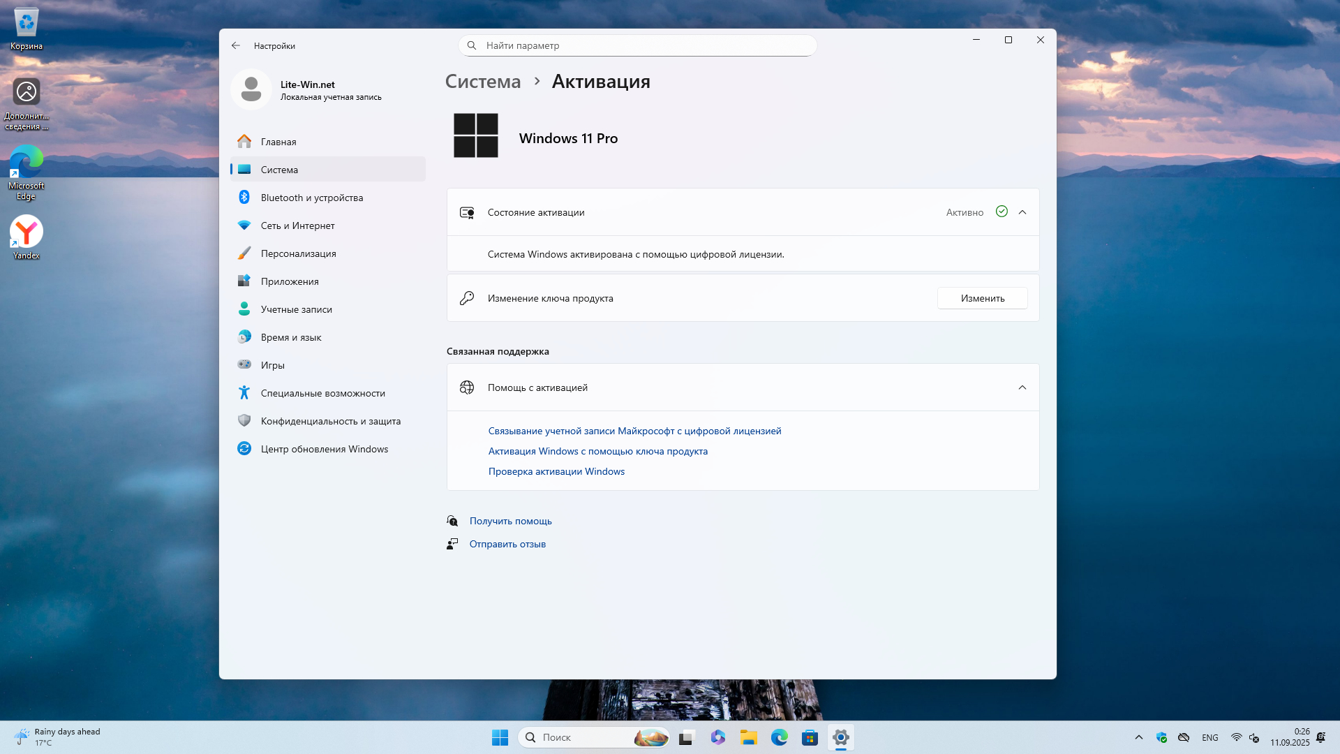 • система активируется автоматически (HWID - цифровая лицензия) при подключении к интернету.