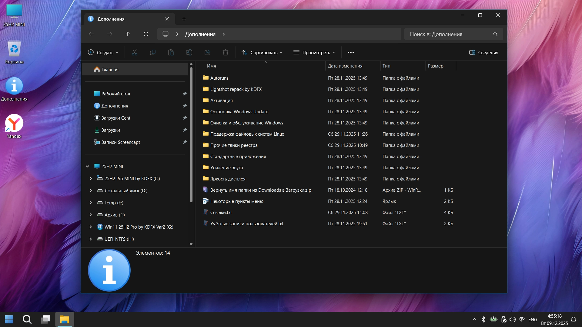 Работоспособность Windows 11 Pro 25H2 Build 26200.7309 by KDFX Variant 2 торрент в скриншотах: