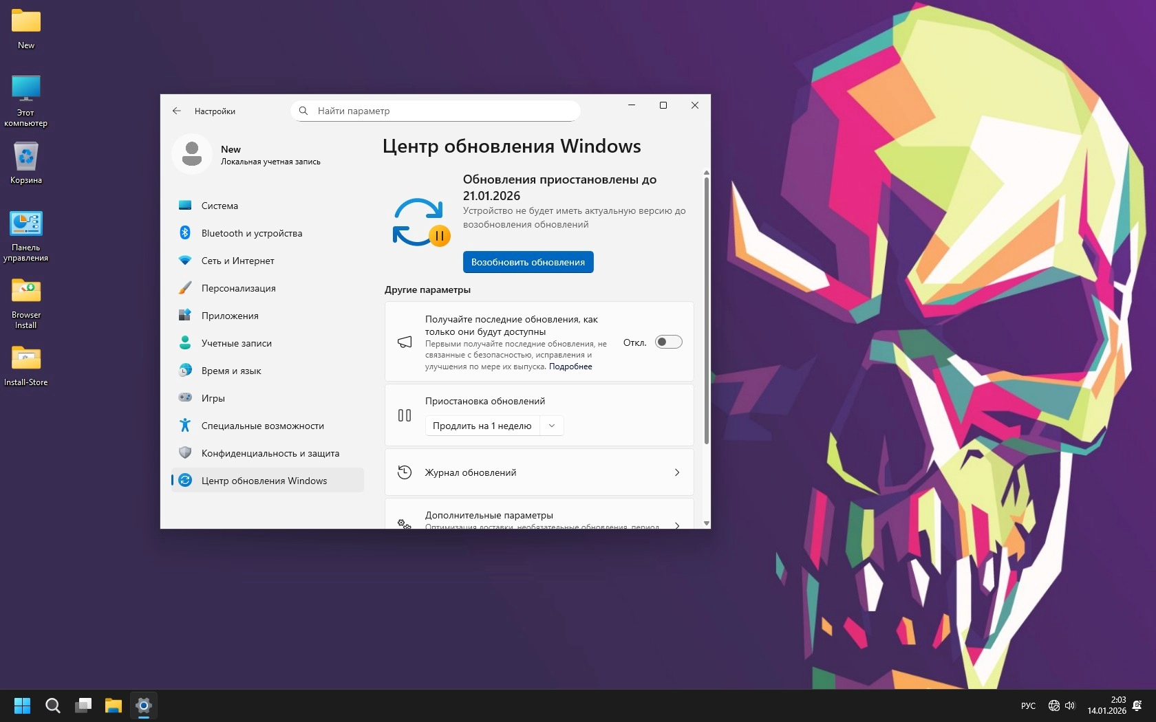 • WinUpdate после каждой новой перезагрузки будет всегда на паузе на неделю.
