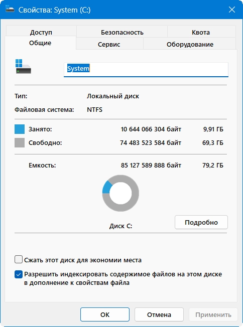 • Отключено зарезервированное хранилище