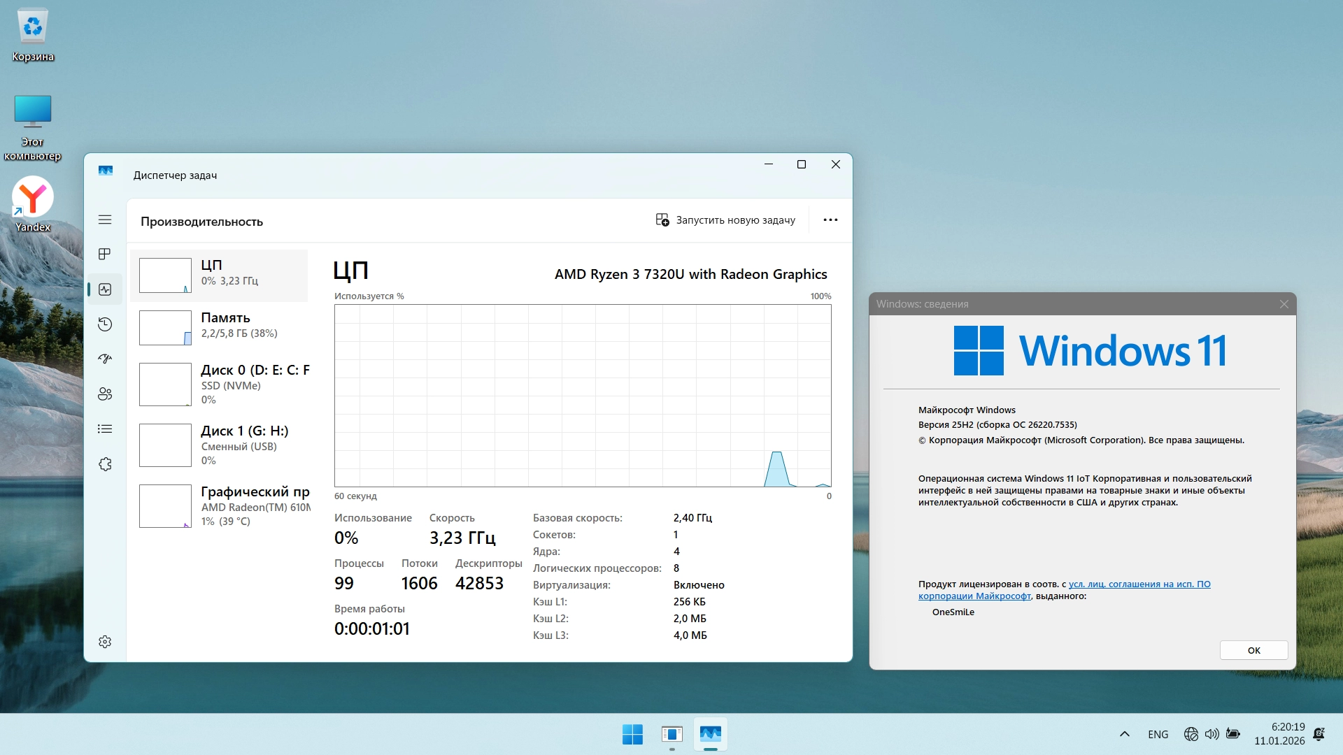 Работоспособность Windows 11 25H2 build 26220.7535 by OneSmiLe торрент в скриншотах: