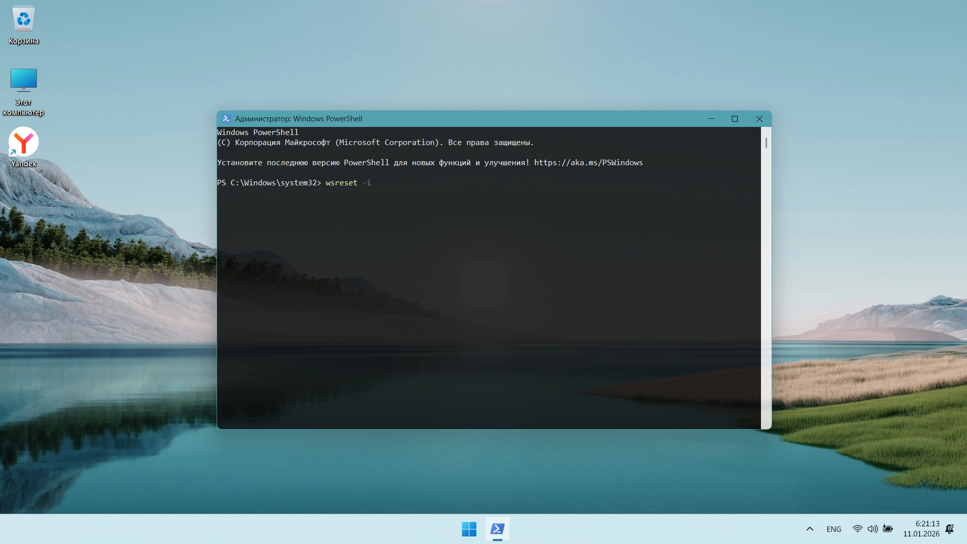 При включенном интернете в PowerShell от имени администратора вводим команду