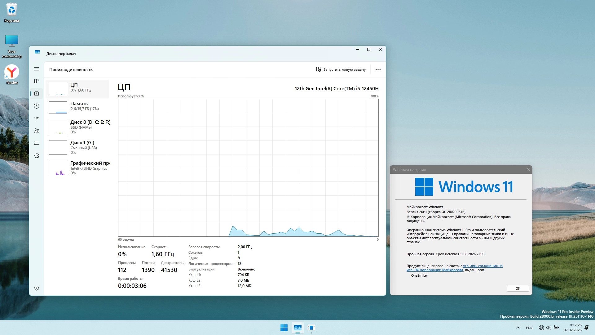 Работоспособность Windows 11 26H1 build 28020.1546 by OneSmiLe торрент в скриншотах: