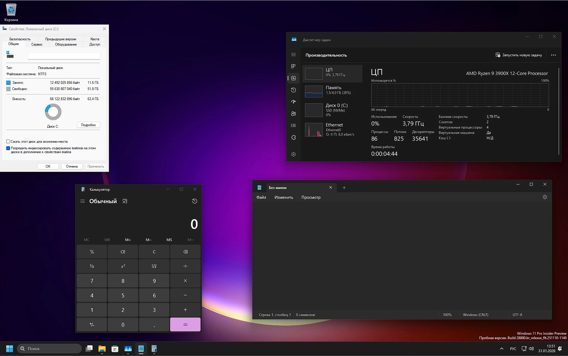 Работоспособность Windows 11 Pro 26H1 28020.1495 Fix by Rsload торрент в скриншотах: