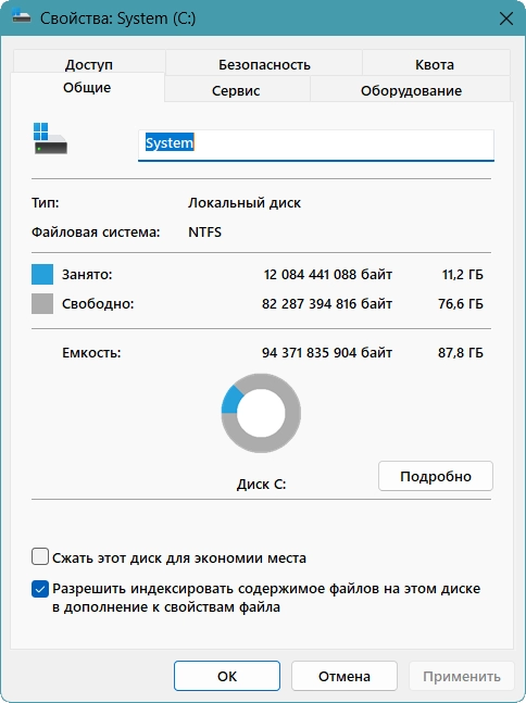 • Отключено зарезервированное хранилище
