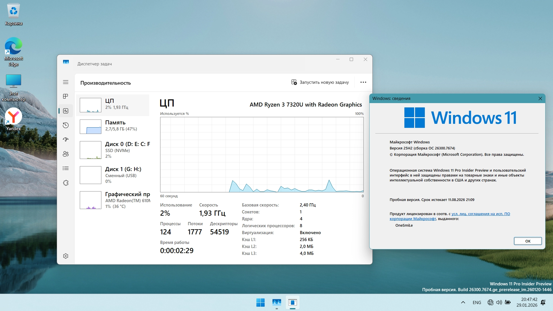 Работоспособность Windows 11 25H2 build 26300.7674 by OneSmiLe торрент в скриншотах: