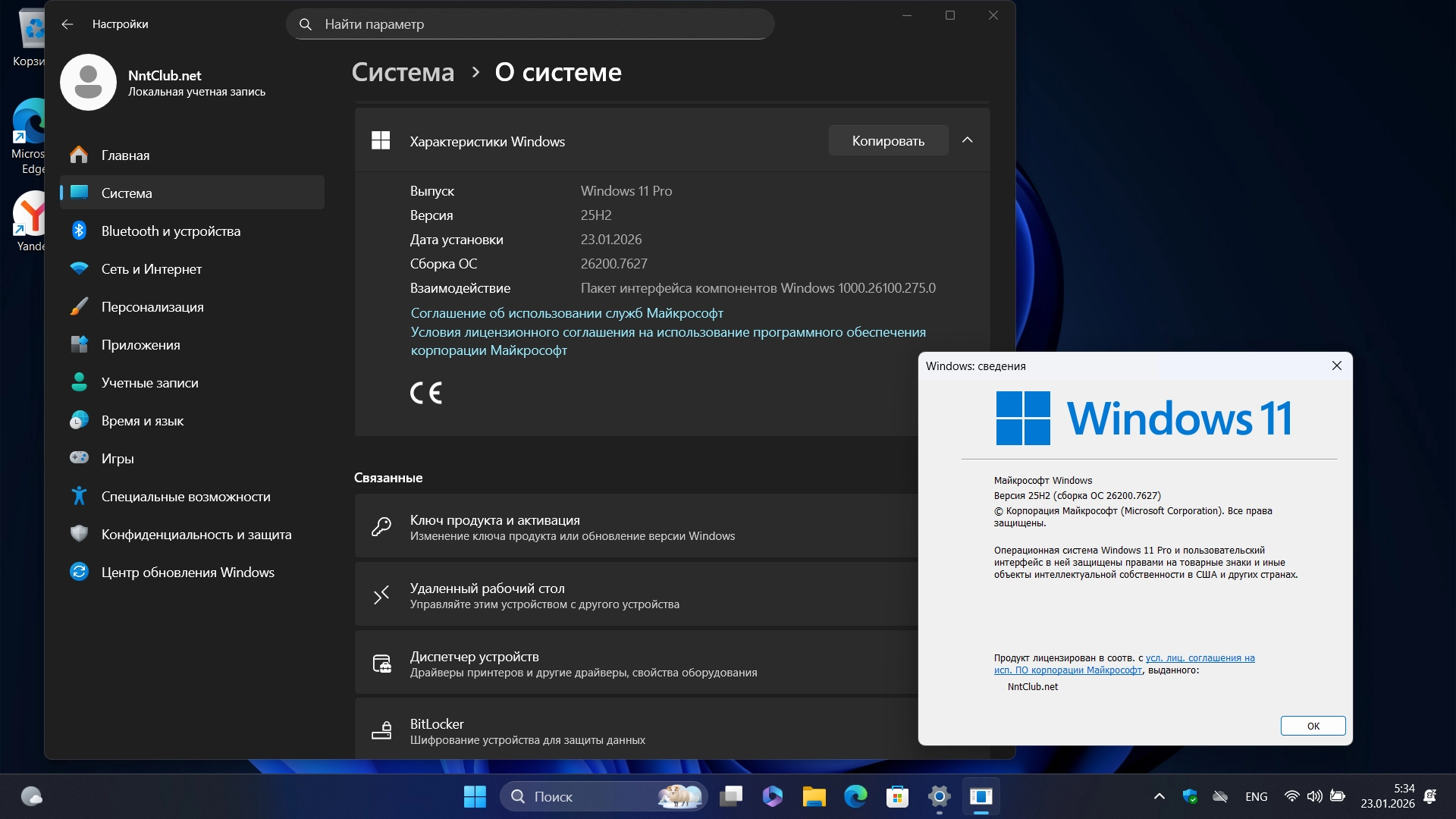 Технические данные Windows 11 Pro 25H2 Build 26200.7627 Full Январь 2026 торрент: