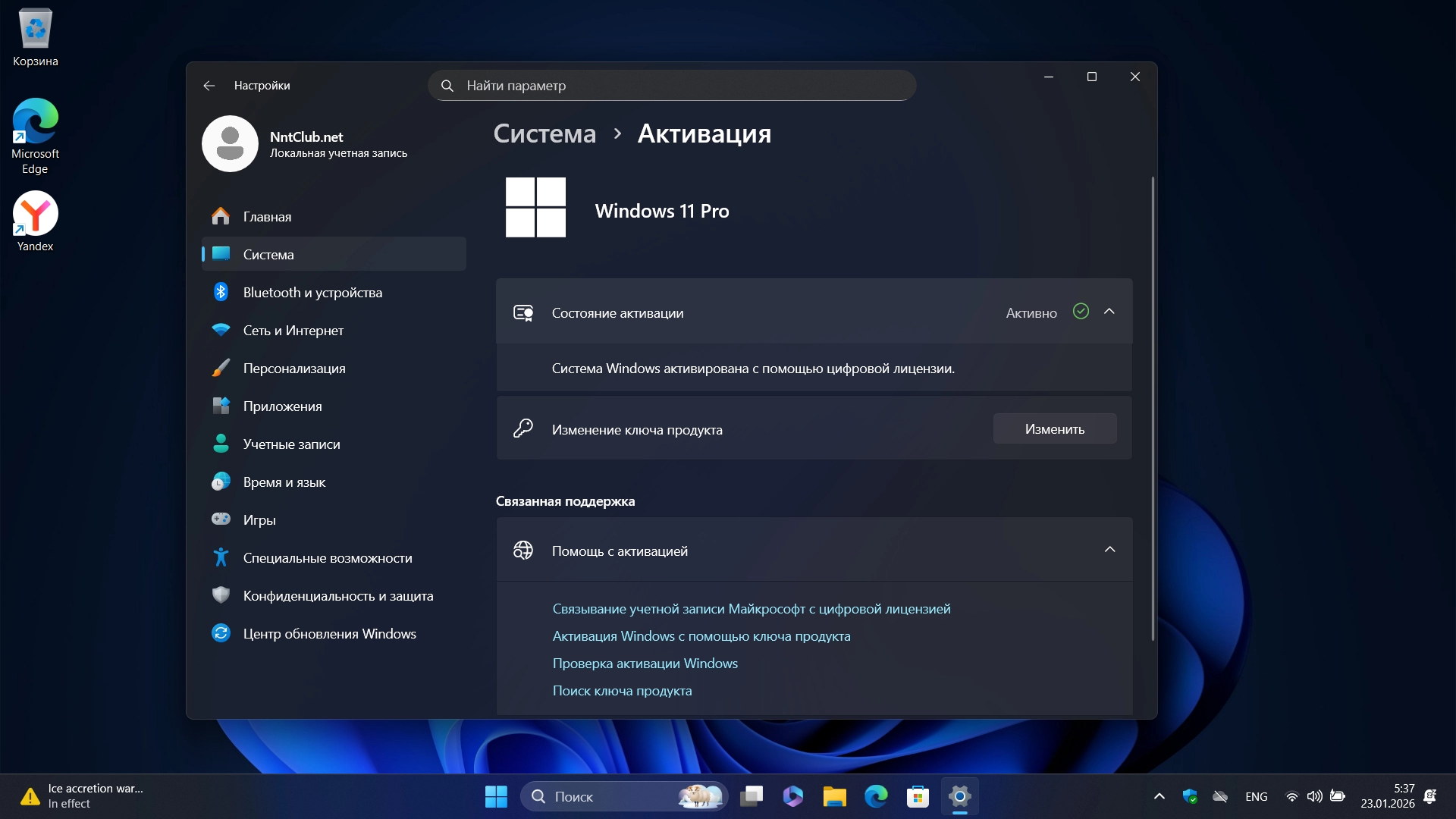 • система активируется автоматически (HWID - цифровая лицензия) при подключении к интернету.
